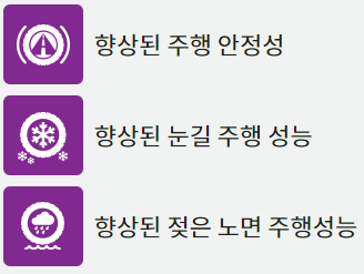| 윈터타이어 | 스노우타이어 대비 저렴 다양한 온도에서 사용 가능 |