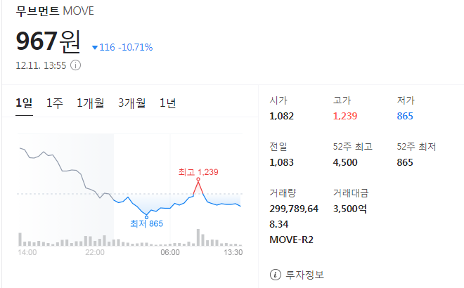 무브먼트코인의 가격은 출시 이후 급등락을 반복하며 높은 변동성을 보이고 있습니다. 메타버스에 대한 기대감이 높아지면서 무브먼트코인의 가격도 상승세를 보였지만, 암호화폐 시장의 전반적인 하락세와 함께 조정을 받기도 했습니다.