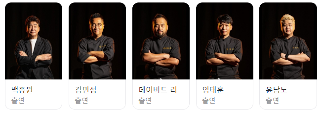 윤남노 셰프: 양식 분야의 전문가로 흑백요리사를 통해 이름을 알리게 됬고 창의적이고 독창적인 요리법을 선보입니다.