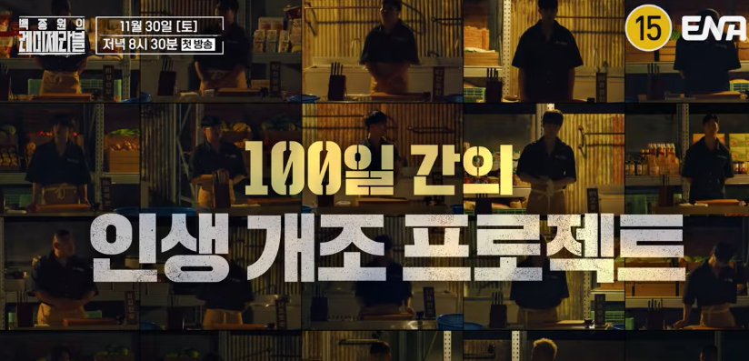 흑백요리사 심사위원, 많은 가맹점을 운영하는 프랜차이즈 대표 백종원님의 새로운 프로그램이 24년 11월 30일 토요일 저녁 8시 30분에 채널 ENA에서 첫 방송됩니다. 100일 간의 인생 역전 프로젝트가 시작됩니다 짧지만 강렬한 서사를 담은 20명의 도전자들이 처음이자 마지막으로 찾아온 인생역전의 기회를 잡기 위해 혹독한 스파스타식 미션과 백종원이 사람에게 진심을 다하는 모습을 보여주는 진정성이 담긴 성장 예능 입니다.