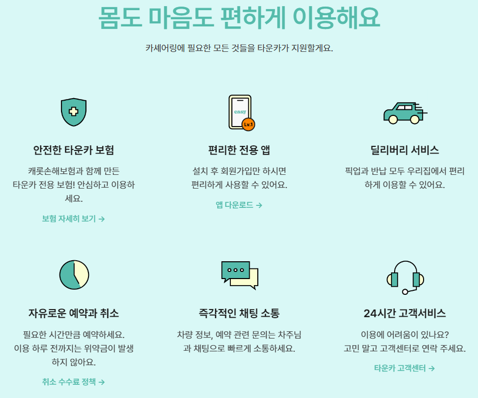 타운카의 가장 큰 장점은 경제적인 측면입니다. 차량을 소유하지 않고도 필요할 때 쉽게 이용할 수 있어, 유지비용과 보험료를 절감할 수 있습니다. 또한 타운카는 안전을 최우선으로 생각하기 때문에 차량 대여 시 차량의 상태를 점검할 수 있는 시스템을 제공하며, 사고 발생 시에는 보험 혜택도 지원합니다. 사용자 간의 안전한 거래를 보장하기 위해 실명 인증 및 신원확인 절차를 진행합니다.