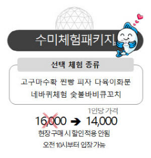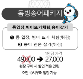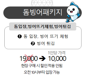 - 돔빙어패키지 : 돔입장 + 빙어 뜨기 체험 + 빙어튀김