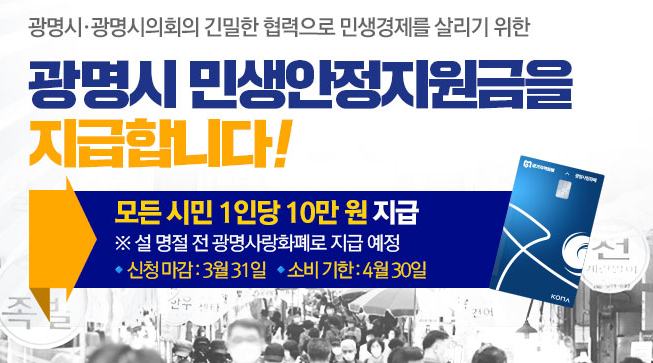 광명시 민생안정지원금의 신청 기간은 ~2025년 3월 31일 (미사용 금액은 전액 환수 됩니다.)