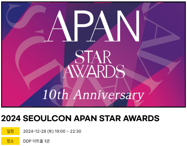 - SEOULCON APAN STAR AWARDS : 전 세계 한류 열풍을 몰고 온 한국 드라마 전체 채널을 통합한 시상식