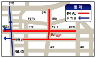 - 구간 : 세종대로 R~종로 2가 R / 청계광장~청계2가 R / 공평 R~광교 R